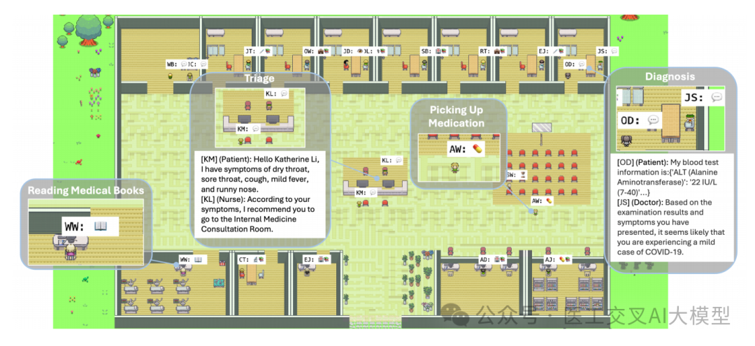 医疗专业人员代理:包括14名医生和4名护士。医生代理负责诊断疾病并制定详细的治疗计划,护士代理则负责分诊和日常治疗支持。