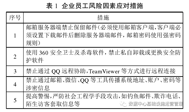 此类风险因素一般是个别电信企业员工安全思想意识薄弱,可能存在内网邮箱不慎点击钓鱼邮件被植入监控木马或以微信等通信工具泄露机房系统IP、账号密码等不当行为。