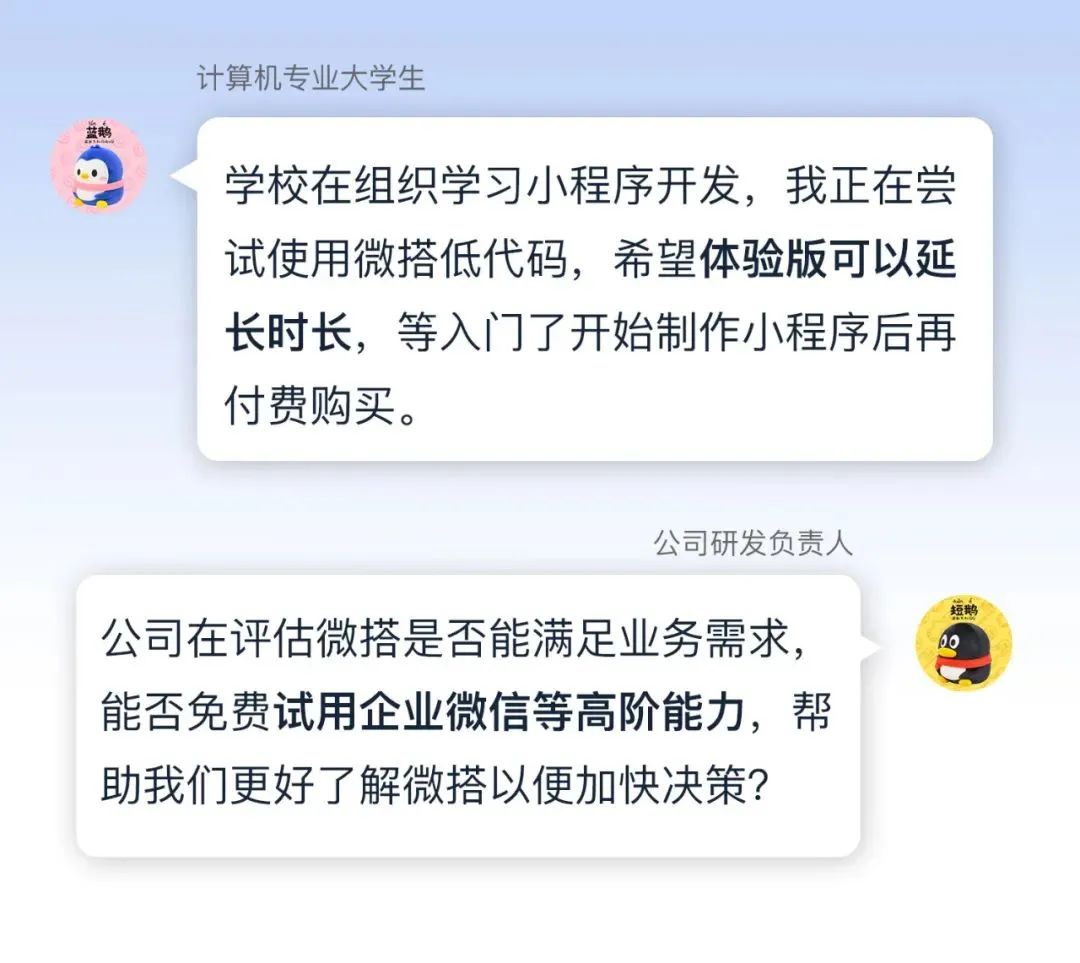本次微搭低代码的体验版升级,主要针对在「学习验证」阶段的开发者,例如企业培训场景、POC验证场景,有更充足的时间上手学习微搭,感受更全面的产品能力。