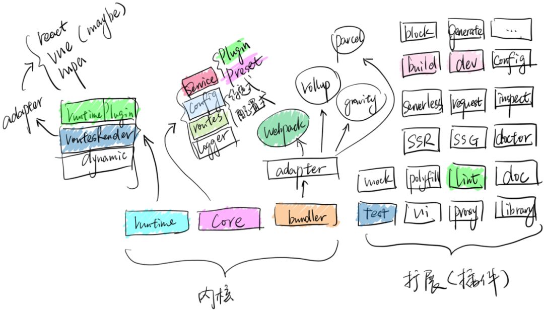 值得一提的是,Umi 3 的底层能力全部收敛在 @umijs/core,如果大家感兴趣,可以用相同的插件体系、配置、utils、日志等快速构建其他框架。