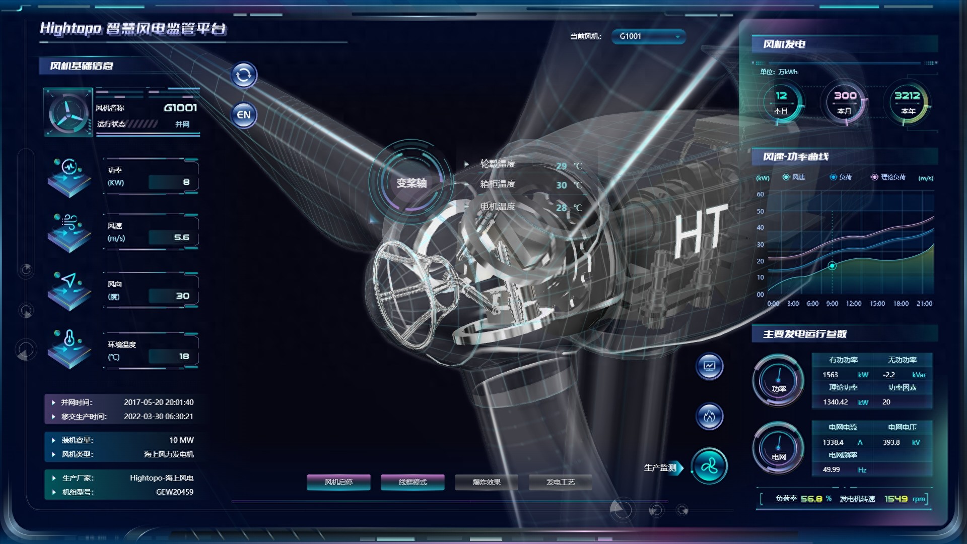 在数据管理方面,图扑 HT 数字孪生平台提供了统一的数据存储和分析环境。通过对海量运行数据的挖掘分析,可以发现设备性能优化的潜力,为管理决策提供数据支持。同时,这些数据也为风机设计优化和技术创新提供了宝贵的参考。